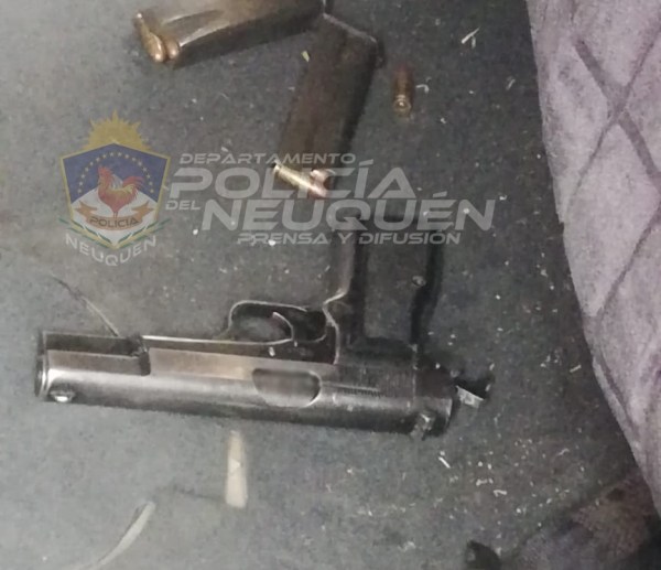 En la vivienda de la Toma Los Polvorines, se secuestraron 10 cartuchos calibre 9 milímetros y luego en el interior de un VW Gol, estacionado en el patio de la vivienda, personal policial encontró una pistola calibre 9 milímetros con un cartucho en recamara y dos cargadores  con siete municiones.