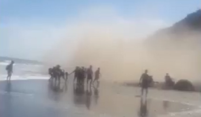 El video muestra el desprendimiento del acantilado que de milagro no provocó una tragedia en una jornada calurosa.