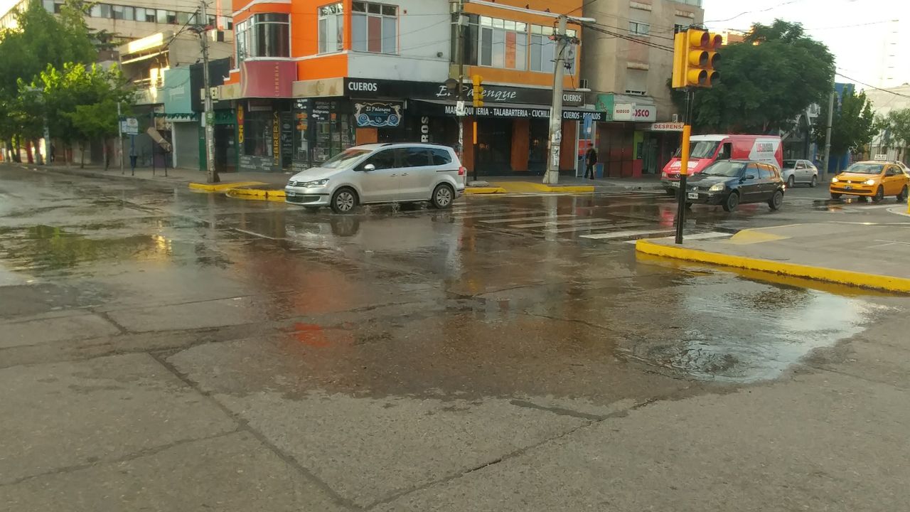 A primera vista podía verse como un gran charco de agua que recorre la avenida céntrica de Neuquén, pero no, era una perdida cloacal que va aumentado de tamaño y que sirvió de excusa para reavivar la polémica entre el municipio y la provincia.