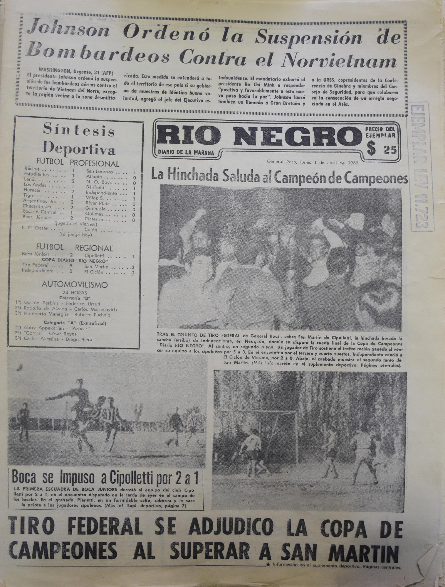 Desde el Archivo de Diario “Río Negro”, compartimos las portadas de los diarios impresos que salieron a la calle, hace ya tiempo. Es una manera de revivir la vida cotidiana que acompañó a los lectores en cada época.