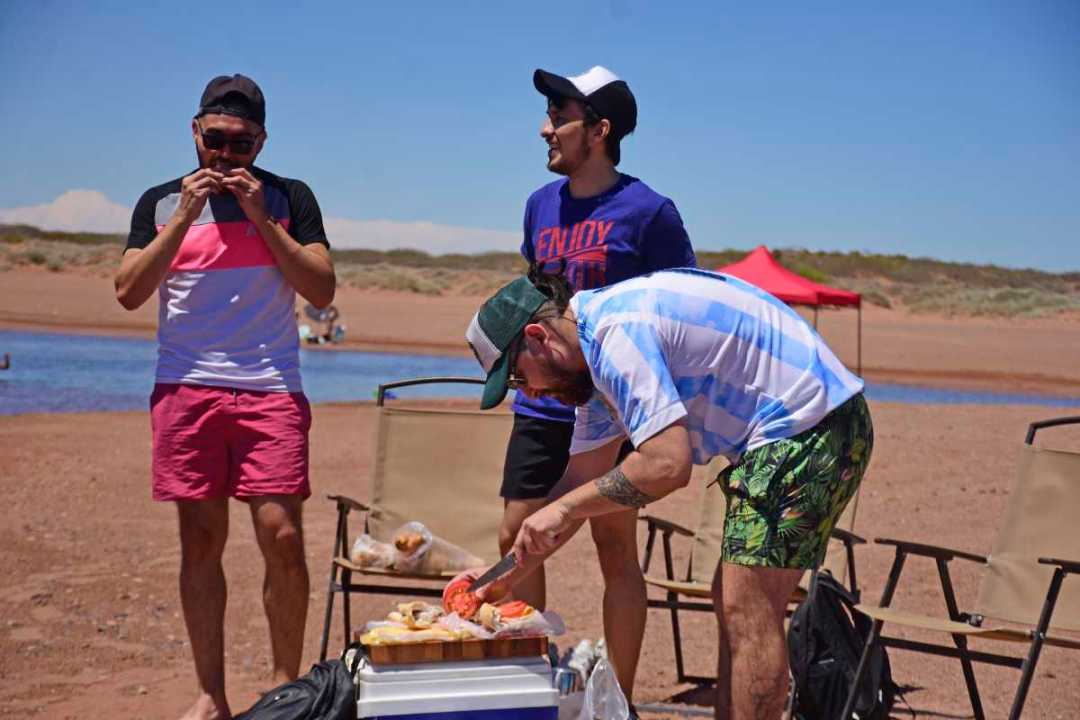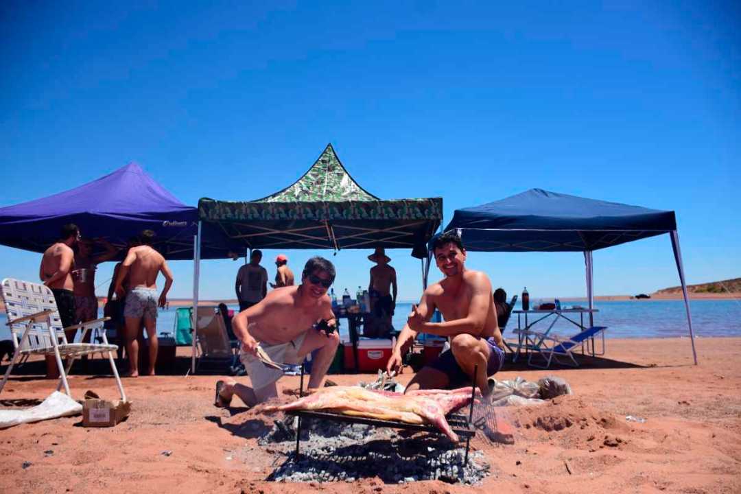 A metros de ahí Maxi, Franco y Gabriel se sinceraban y decían que van siempre desde Neuquén, les gusta cuando está vacío, pero también, cuando es un mundo de gente. “El agua es tranquila, templada, lo único malo es que corre un poco de viento, y se siente mucho”, relataba Gaby mientras preparaba unos tragos.