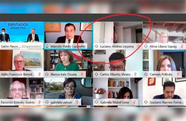 Problemas con las cámaras, micrófonos en mute o abiertos y fondos de pantalla polémicos. Desde que comenzaron las sesiones legislativas virtuales, los representantes políticos en el Congreso Nacional no paran de protagonizar diversos bloopers en su manejo con la tecnología. Ayer, en medio de la presentación del Presupuesto 2021, el diputado del PRO Luciano Laspina dejó la cámara prendida mientras se cambiaba de ropa. La imagen se viralizó y generó revuelo en las redes sociales.