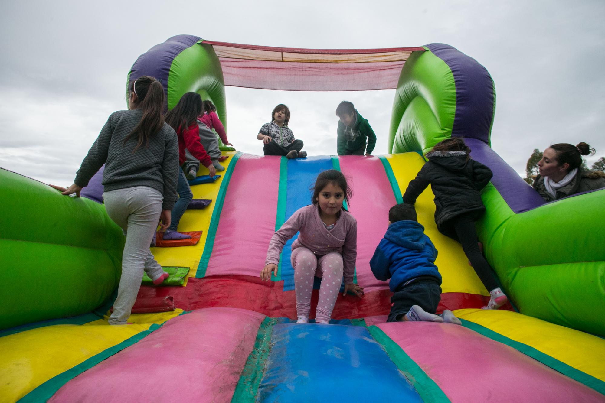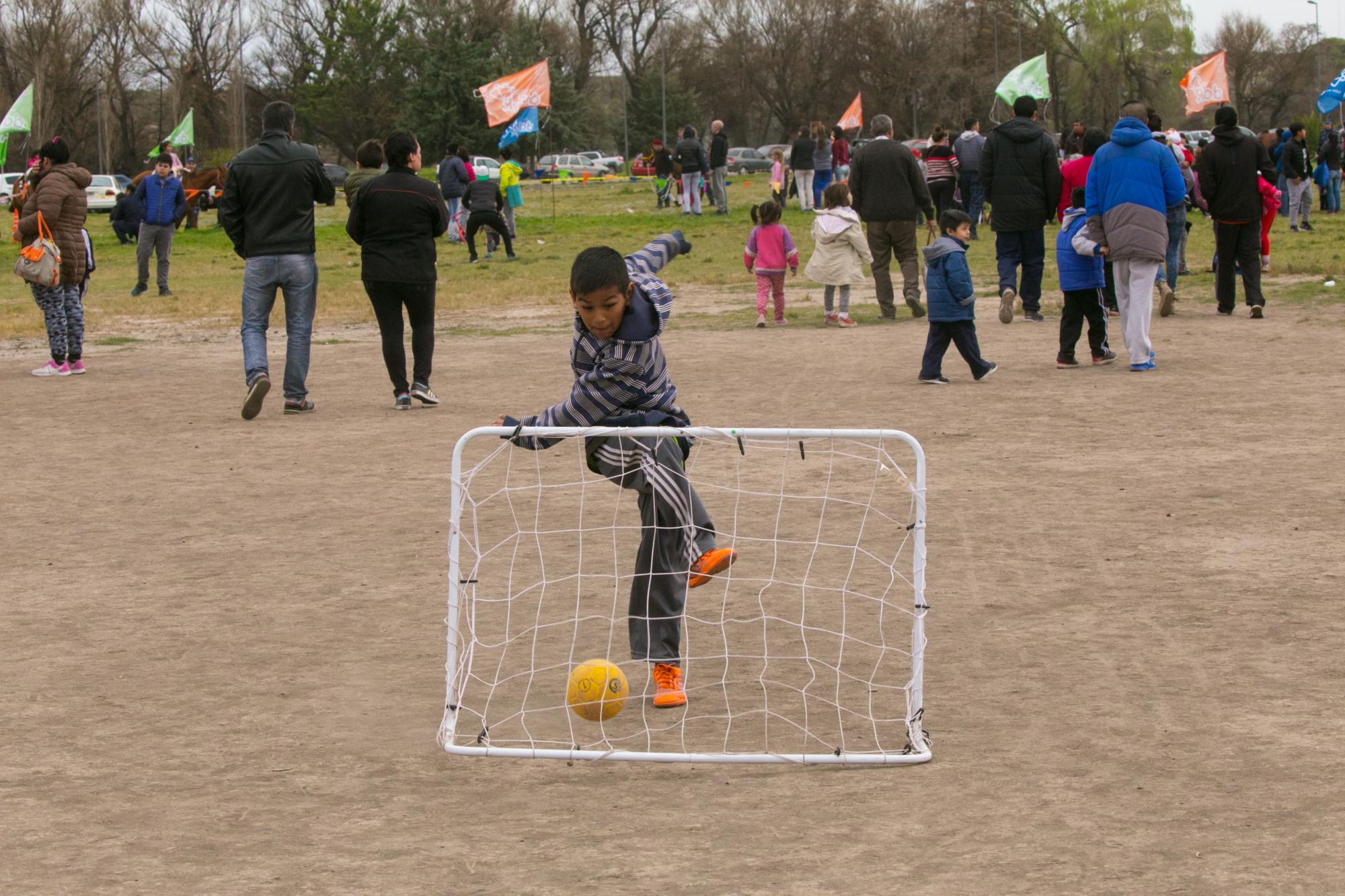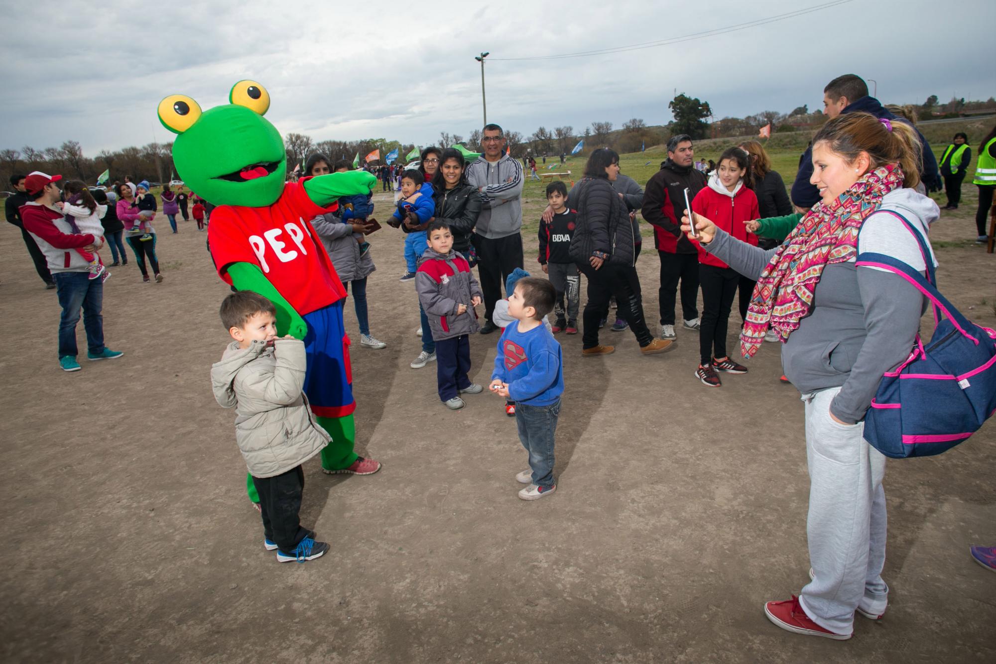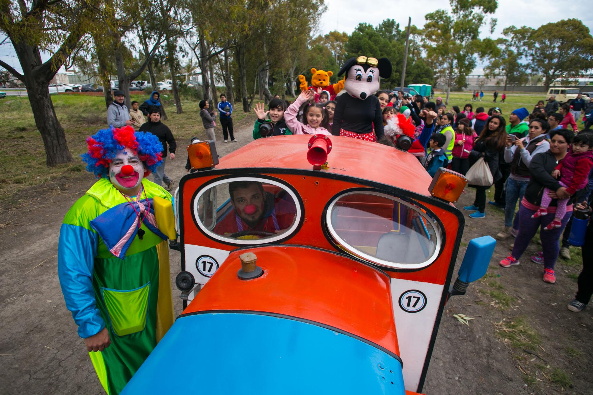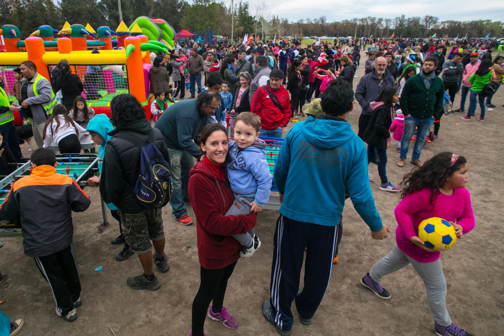 Cientos de niños en compañía de sus padres disfrutaron de forma completamente gratuita de la puesta en escena de un tren que recorrió el predio, en tanto que otros asistentes prefirieron la carrera de embolsados, caer por un tobogán inflable o jugar al metegol.