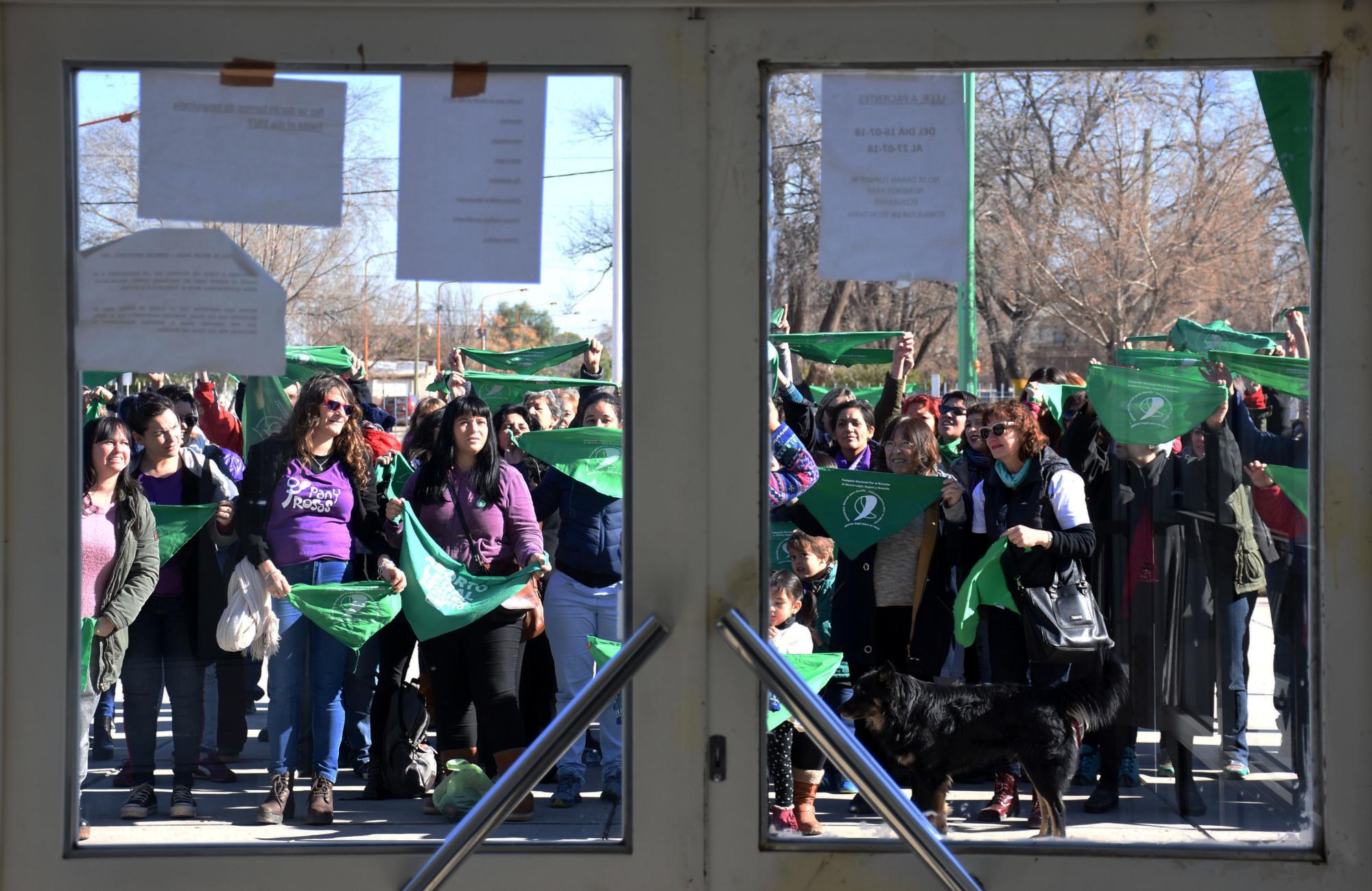 “Aborto libre y legal ya, y que gineco no nos deje de escuchar”, cantaron decenas de personas en las puertas del edificio público. La legisladora Marta Milesi, la médica María Luz Riera, y la referente del colectivo feminista La Revuelta, Ruth Zurbriggen fueron algunas de las personas que participaron del pañuelazo. El director del hospital, Carlos Lasry se acercó al lugar una vez terminada la actividad.