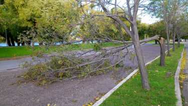 El viento derribó árboles, postes y carteles. Una menor herida al caer una rama en la Costanera.