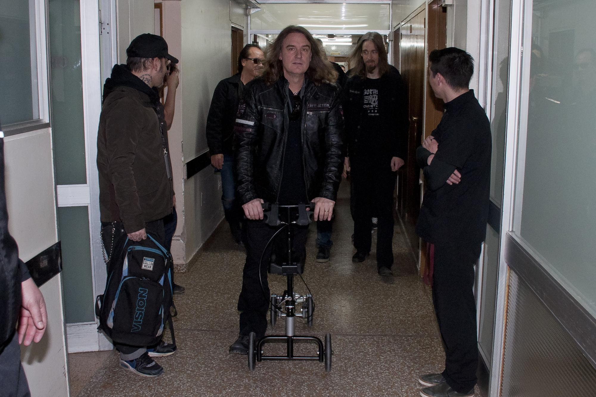 Inmediatamente Mustaine abandonó el hospital, llegó el resto de la banda que también subió hasta el cuarto piso para conocer al fan herido. Antes de eso, David Ellefson, bajista y miembro fundador de la banda junto a Mustaine, se tomó unos minutos para relatarle a la cámara que sostenía el propio Kiko Loureiro, guitarrista del grupo, el incidente de anoche, seguramente como un registro del tour. Atento al relato estaba el baterista Dirk Verbeuren. Todo esto ante la incrédula mirada de trabajadores del hospital, sorprendidos acaso por la buena la predisposición y la afabilidad de los músicos.