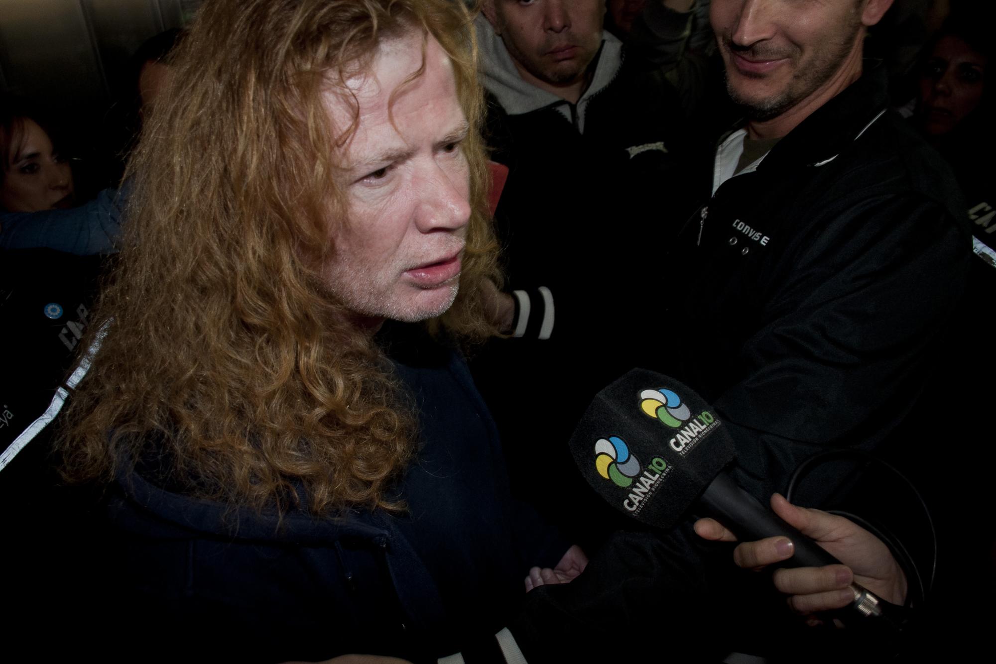 En el Hospital Castro Rendón, personal de salud le solicitó al cantante que sostenga un cartel de protesta por la situación que atraviesa el sector. Mustaine solo respondió “Silencio, es un hospital”, “estos muchachos son muy ruidosos, es un hospital, si quieren hablar conmigo vengan afuera”.