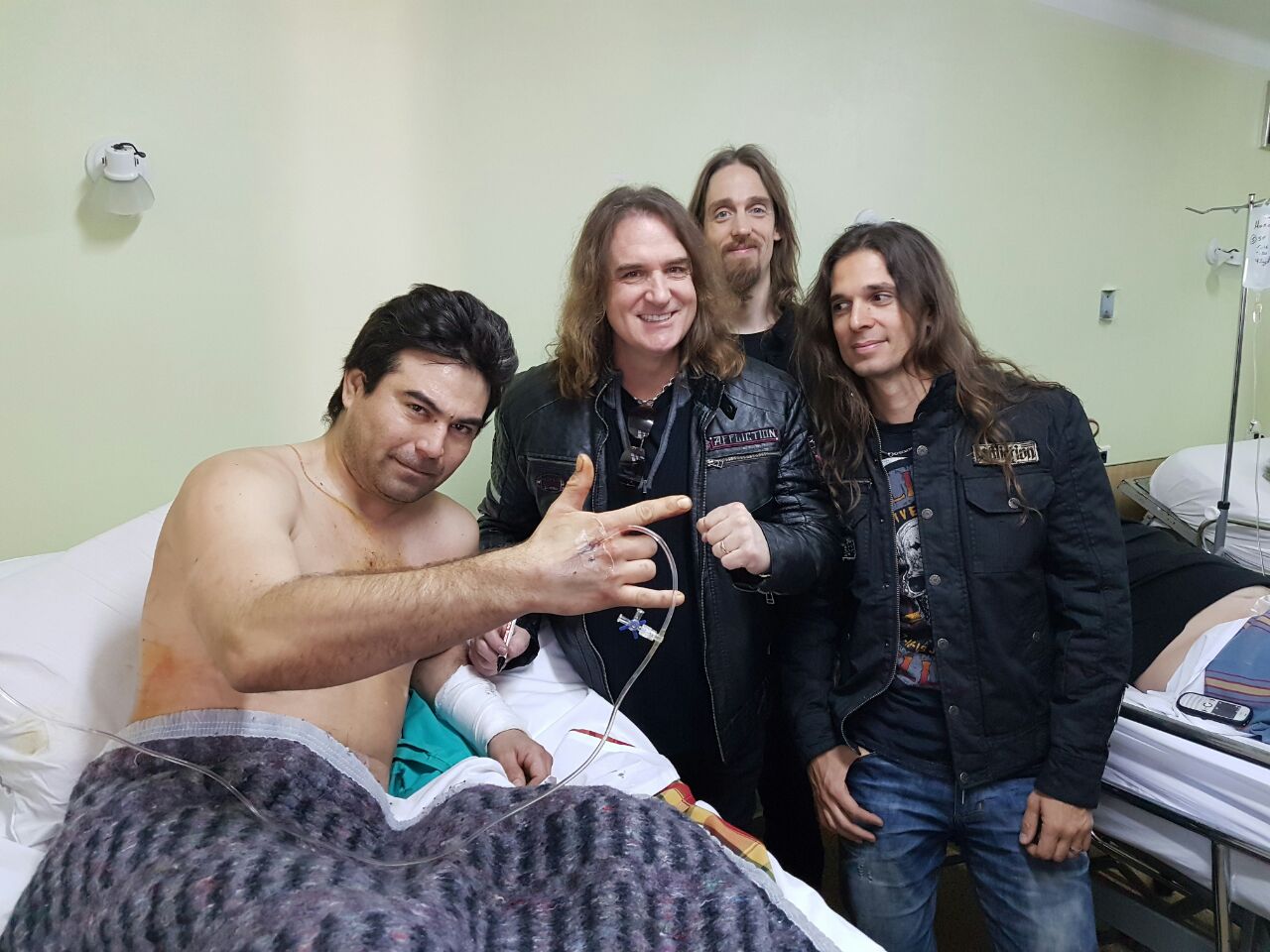 Los restantes integrantes de la banda de Heavy Metal también conocieron personalmente al fanático herido.
