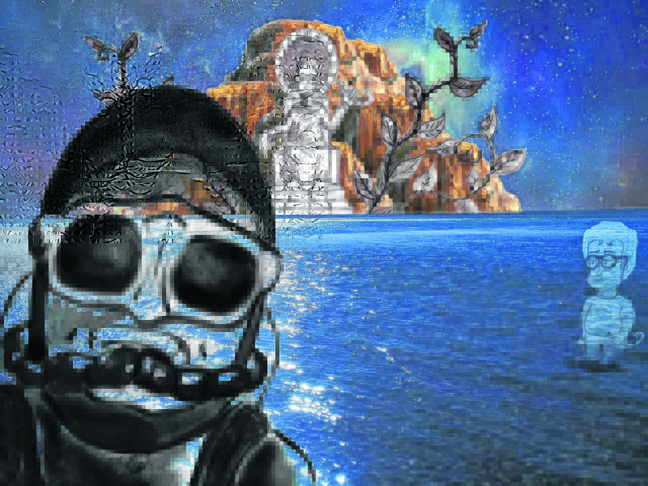 ¿Qué veremos en escena? Al quinteto, todo el tiempo. A fin y al cabo, es un espectáculo musical, sí, pero no del todo. Habrá proyecciones en una pantalla. “Un trabajo que hizo Nico con fotos intervenidas y dibujos suyos que se mueven en un universo que también se va moviendo”, revela Lusarreta, quien de la música dirá sólo que tiene algo vintage de las épocas de Luis Alberto Spinetta viejo, los 80… música que tiene que ver con el jazz, pero también con el rock”. Los textos en las voces y los cuerpos de Robín y Alías (inter)actúan con la música del quinteto y las proyecciones para dar forma a un viaje de una hora y quince minutos que comienza en el escenario y se completa con el viaje cada espectador. Un hombre rana espera por ellos.