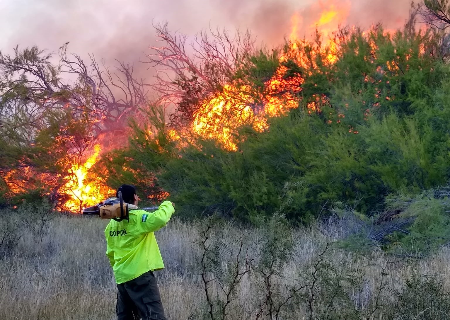 Tamariscos, cortaderas, jarillas y álamos fueron devastados por las llamas. Foto: Bomberos Voluntarios de Sierra Colorada.