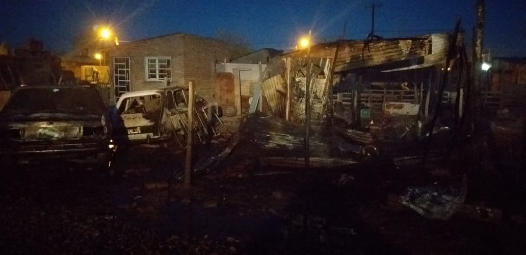 El fuego destruyó toda la casa de madera y también alcanzó a dos autos que estaban al lado de la vivienda.