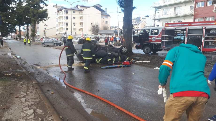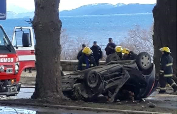 Un lesionado tras espectacular vuelco en la Costanera de Bariloche