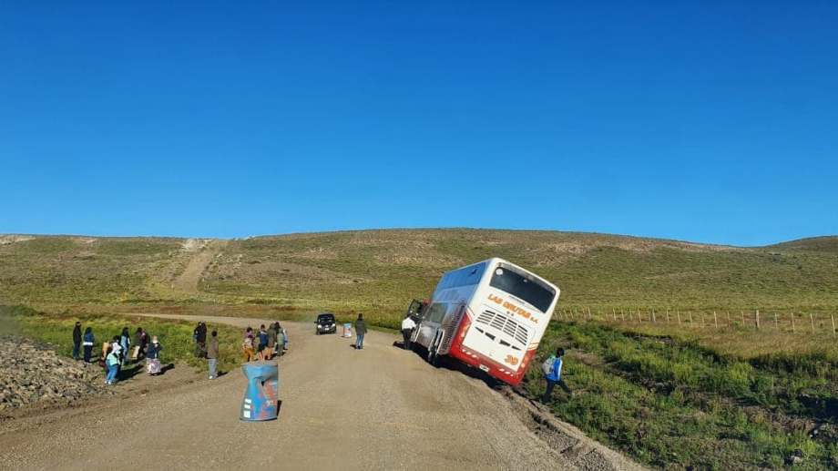 Pasajeros de un micro de la empresa Las Grutas vivieron momentos de mucha tensión y miedo, luego que el rodado, de dos pisos, despistará en un sector de ripio de la Ruta nacional 23.