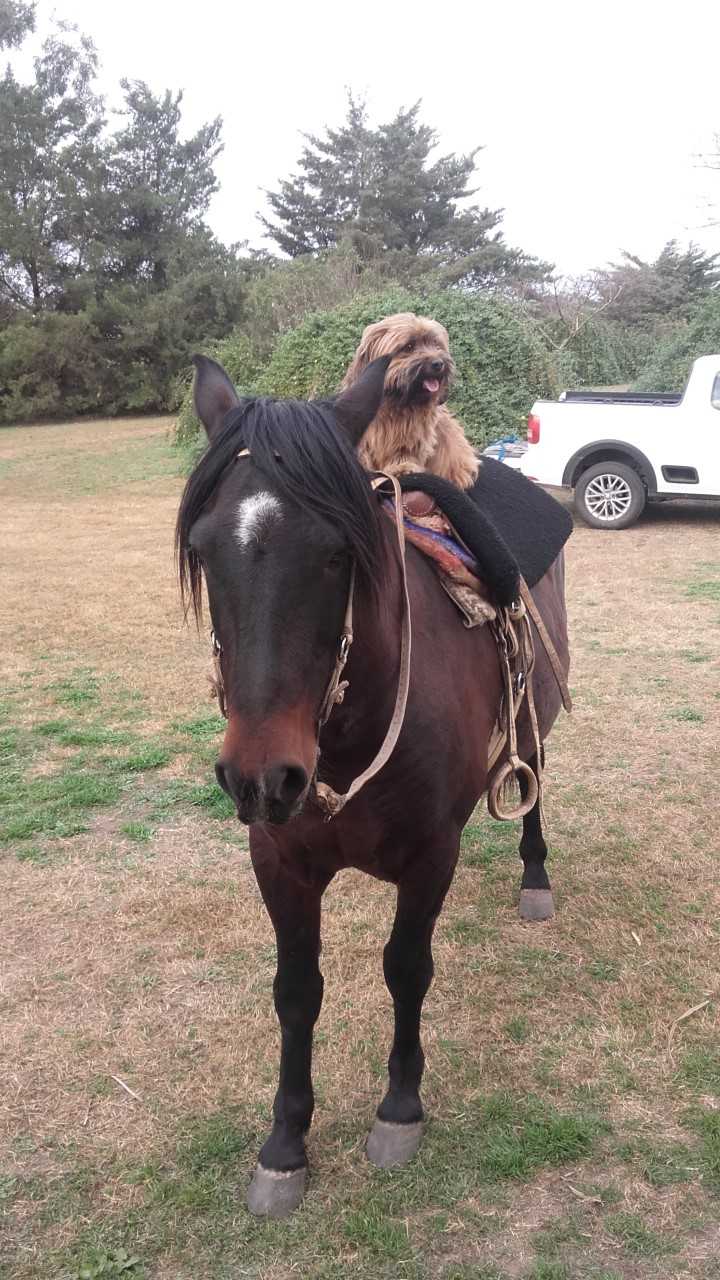 Coirón tiene 9 años y es un caballo súper manso sin perder su «personalidad». Los afortunados que disfrutan de su compañía son Julio y Norita en Sierra Colorada.