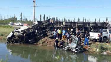 Se presume que el auto que transitaba hacia Cinco Saltos habría cruzado al carril contrario e impactó de frente contra el camión, que circulaba en dirección hacia el sur.