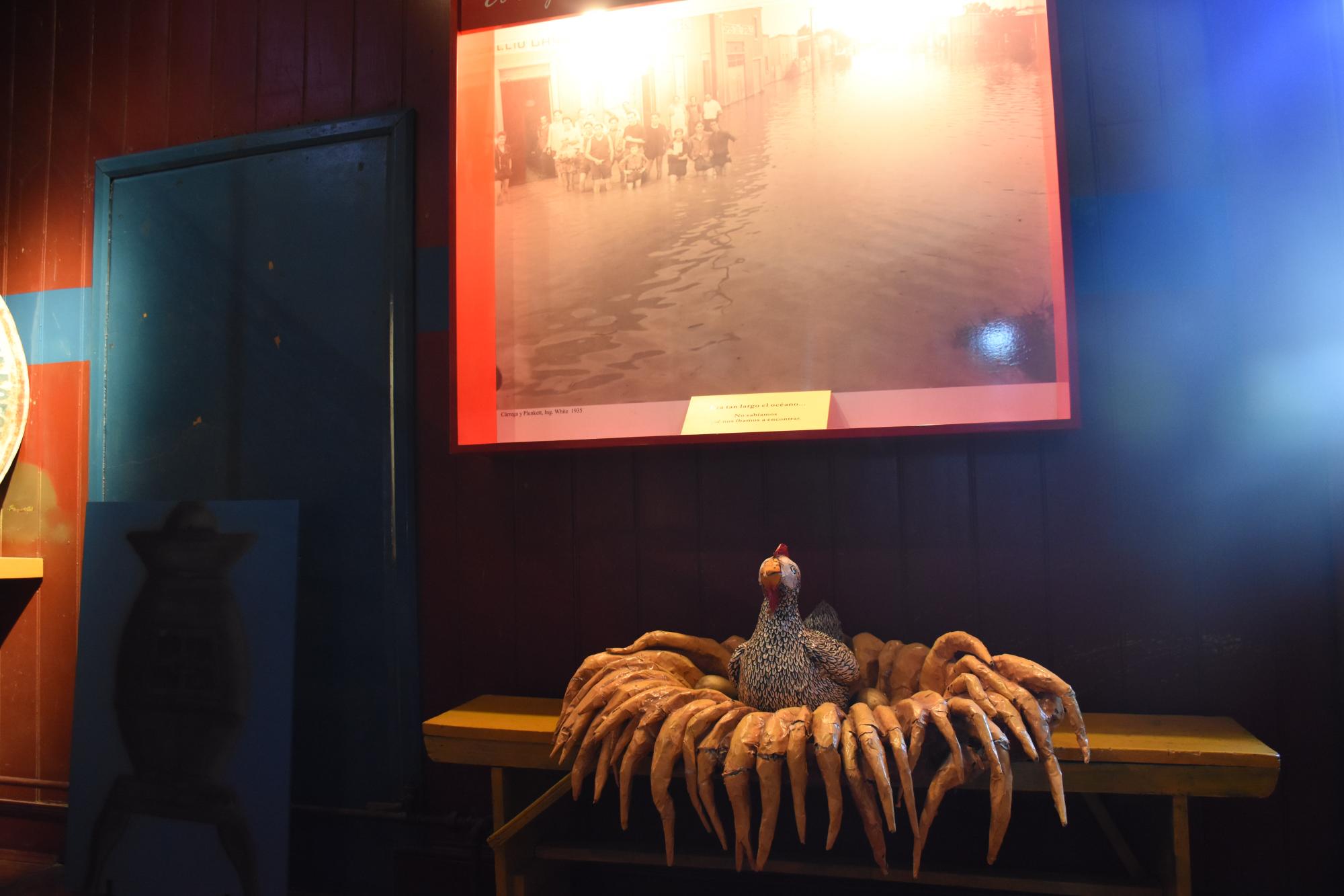 Las salas del museo ponen en escena el pasado inmigratorio del lugar desde la perspectiva de la vida cotidiana: cocina, peluquería, bar, casa y escuela son algunos de los espacios que se recrean con objetos marcados por el uso diario (ollas, cachadas, tijeras de poco filo, viejos cuadernos escolares) y objetos de cotillón, barquitos de papel glacé, pescados y sirenas de cartapesta) en un marco variado de voces, música, texturas, luces y sombras. Lo de las voces no es un detalle menor, al contrario; uno llega a una habitación y a medida que se va viendo los objetos se va escuchando a quienes los utilizaron. Impactante. ¡Qué buena idea! No será nueva pero es poco frecuente esto.