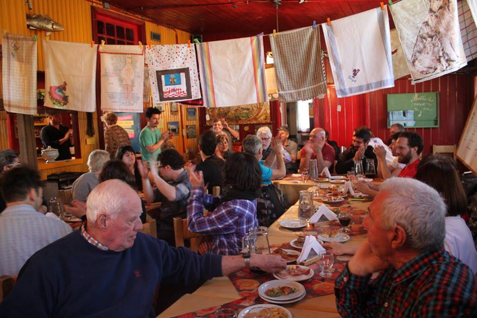 Otra vez la propuesta fue escribir sobre herramientas de cocina, así que cada participante llevó un objeto fundamental de su mesada. Fundamental por lo útil, por lo querido, por la posibilidad de narrar historias que traía. Repasador, tabla de picar, plato y tapa-botellas circularon de mano y mano.