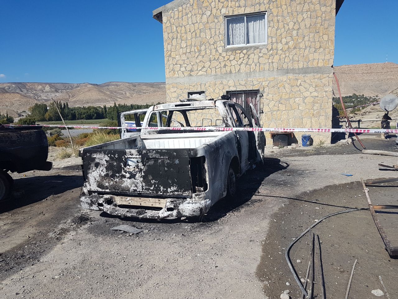 Los daños fueron totales y si bien los bomberos llegaron al lugar y las llamas podían verse a lo lejos, tampoco éstos pudieron hacer nada por las constantes amenazas del hombre que se encontraba con el arma reglamentaria en mano y el niño.