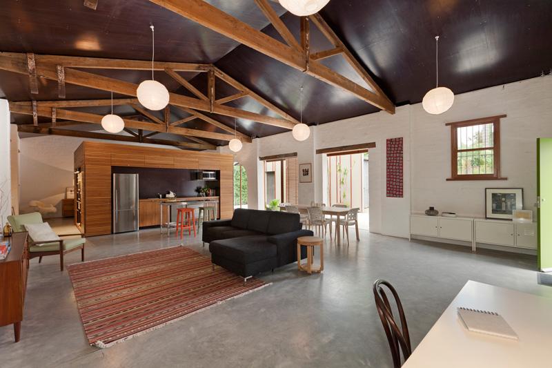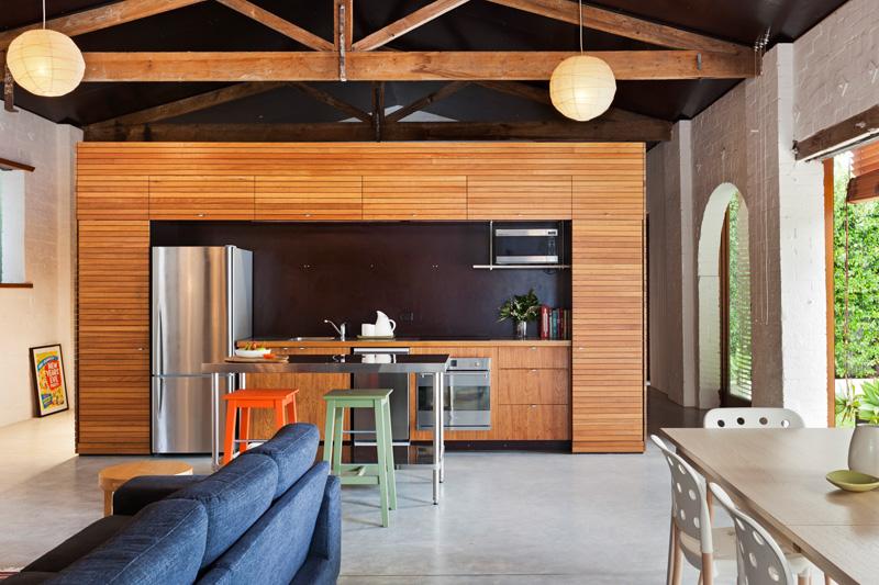 El arquitecto Richard Smith trabajó para convertir lo que una vez fue un viejo edificio de ladrillo en Sydney, Australia, donde funcionaba un taller mecánico en una casa con techos altos y vigas de madera expuestas.