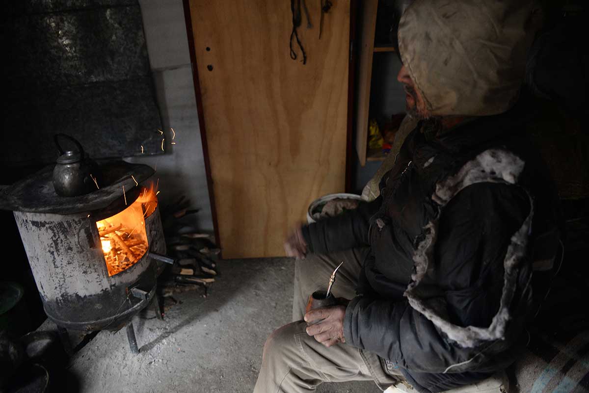 Antes de tener la salamandra, Julio se calentaba, tomaba mate y cocinaba en un fogón junto a una piedra, que no tiene ningún reparo.