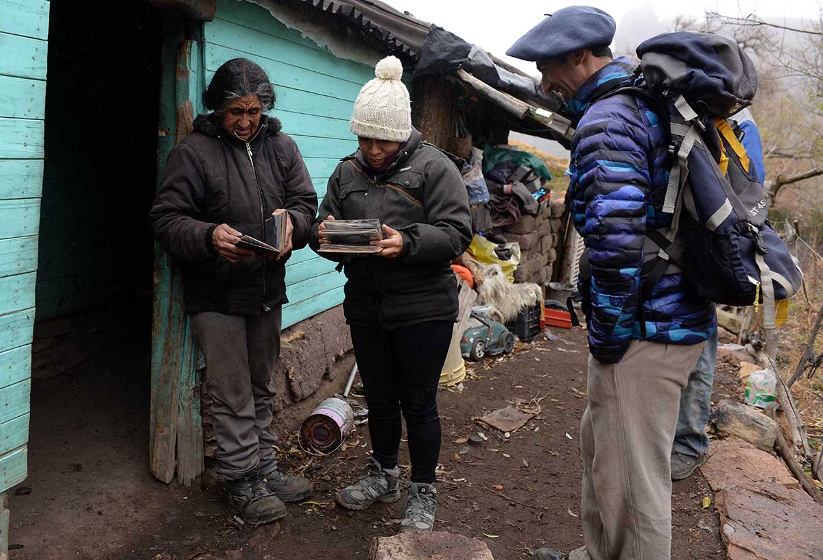 Vanesa le explica el motivo de la visita y deja las donaciones sobre una mesa. El interior de la casita es oscuro. Apenas entra un poco de luz natural por una ventana pequeña. Doña Matilde invita cordialmente a sentarse al lado de la cocina a leña.