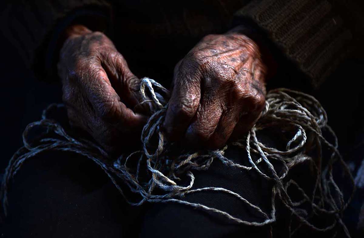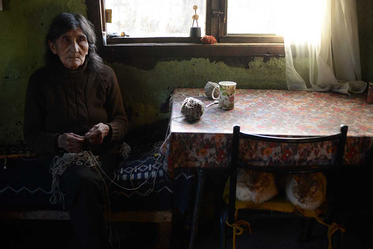 Por eso, cuando pasaron a dejar la ayuda a la casa de doña Rosalía Marín describió con detalle cómo la mujer trabajaba la tierra. Hoy, la antigua pobladora de Villa Llanquín tiene 90 años y de las plantaciones de papas del siglo pasado solo queda el relato. La anciana saludó con afecto a Diego, que le habló fuerte al oído. Doña Rosalía hilaba un ovillo de la lana de sus propias ovejas. Es lo único que puede hacer, porque tampoco puede tejer.