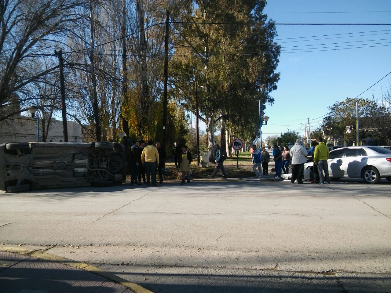 Como consecuencia de un choque, una Fiat Toro se dio vuelta en la zona céntrica de la ciudad.