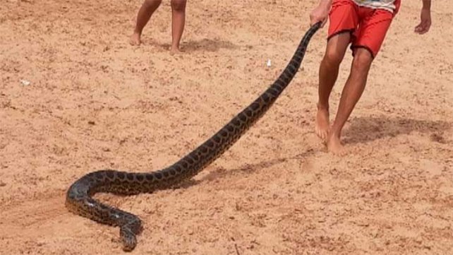 Algunas de las personas grabaron el momento con sus celulares y los videos circularon por las redes sociales: en ellos se puede observar cómo la anaconda bordea la orilla de la playa y pasa cerca de algunas reposeras y sombrillas.