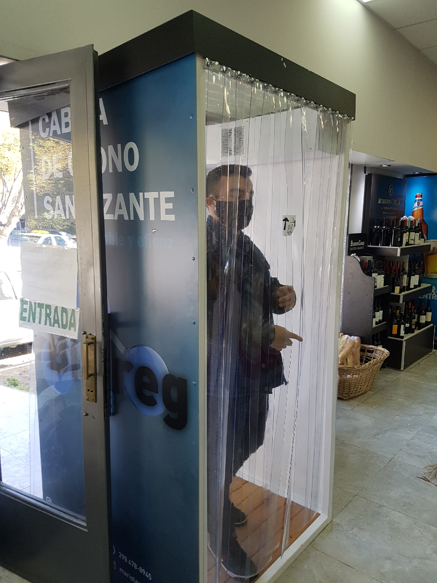 Este fue el punto de partida para un grupo de emprendedores de Villa Regina, quienes crearon y pusieron en funcionamiento la primer cabina sanitizante en la zona. Dicho recinto utiliza ozono para la desinfección de las personas.