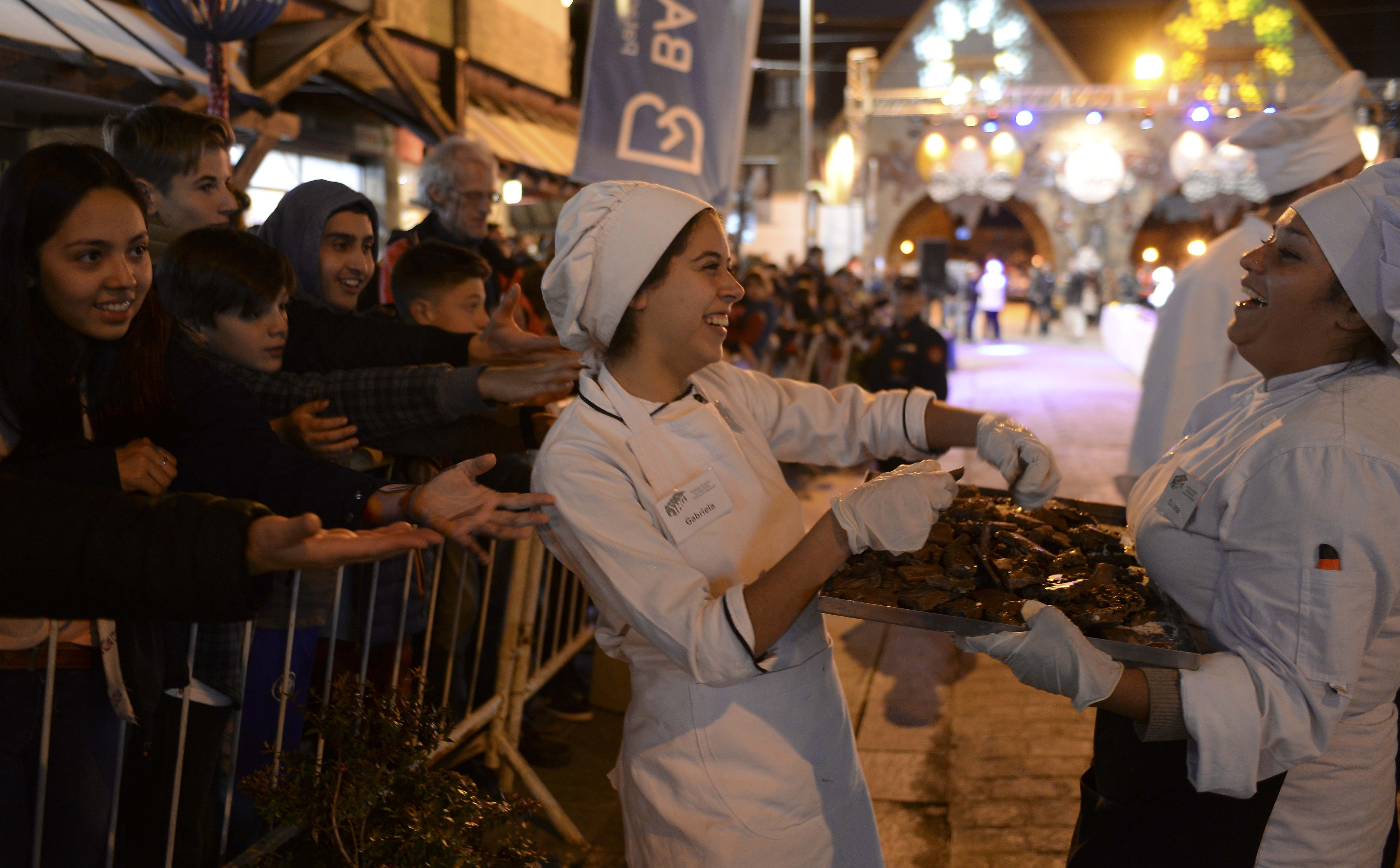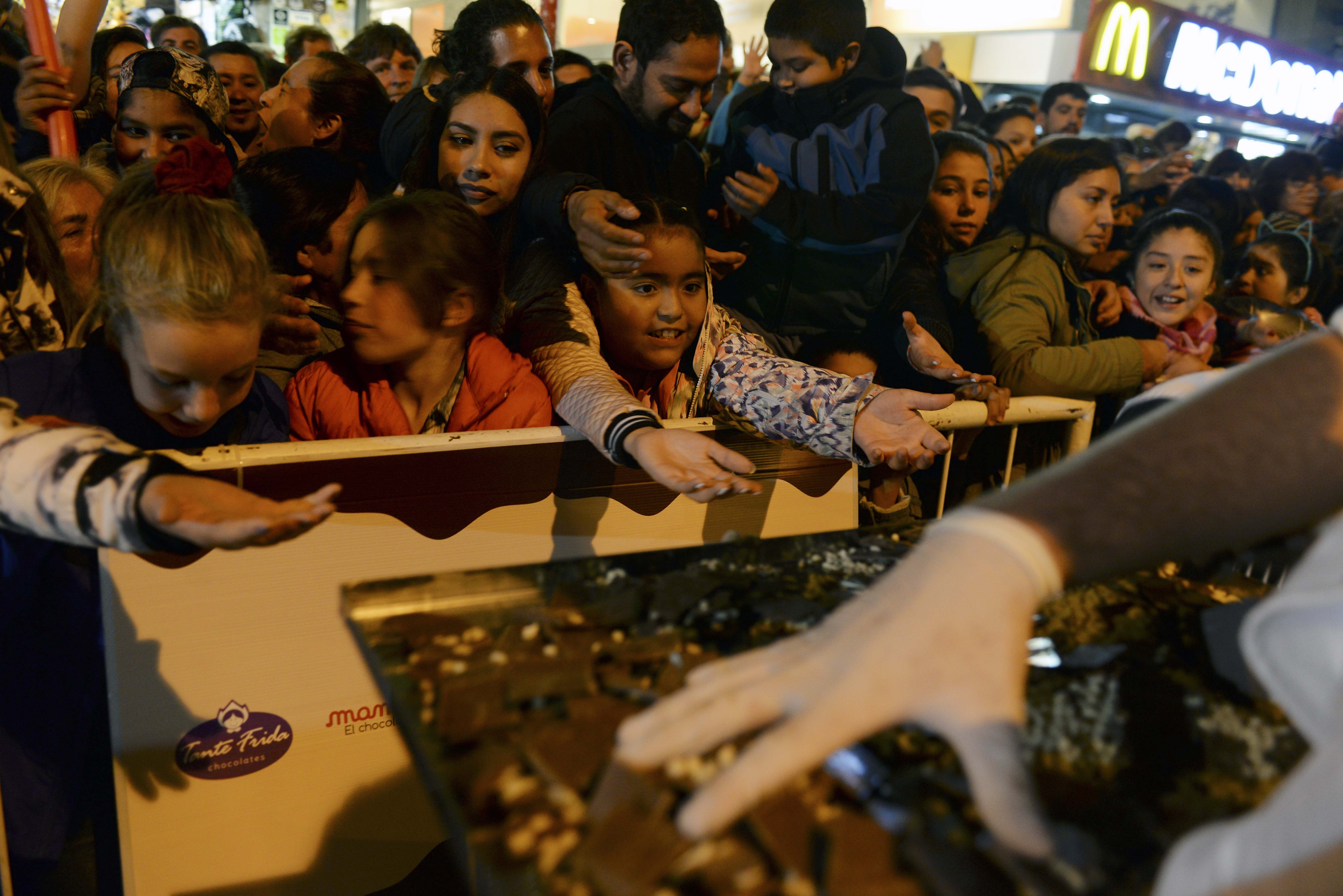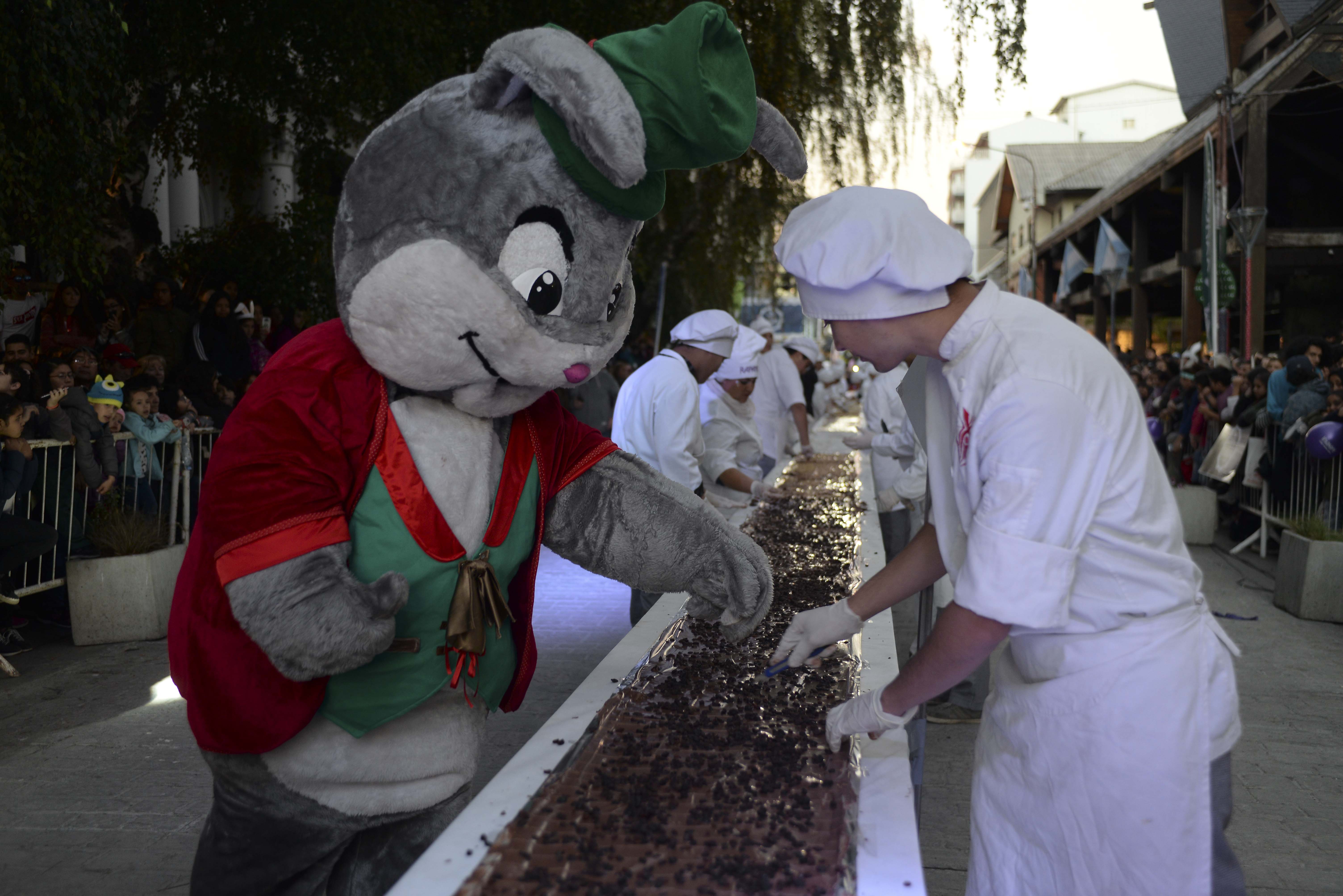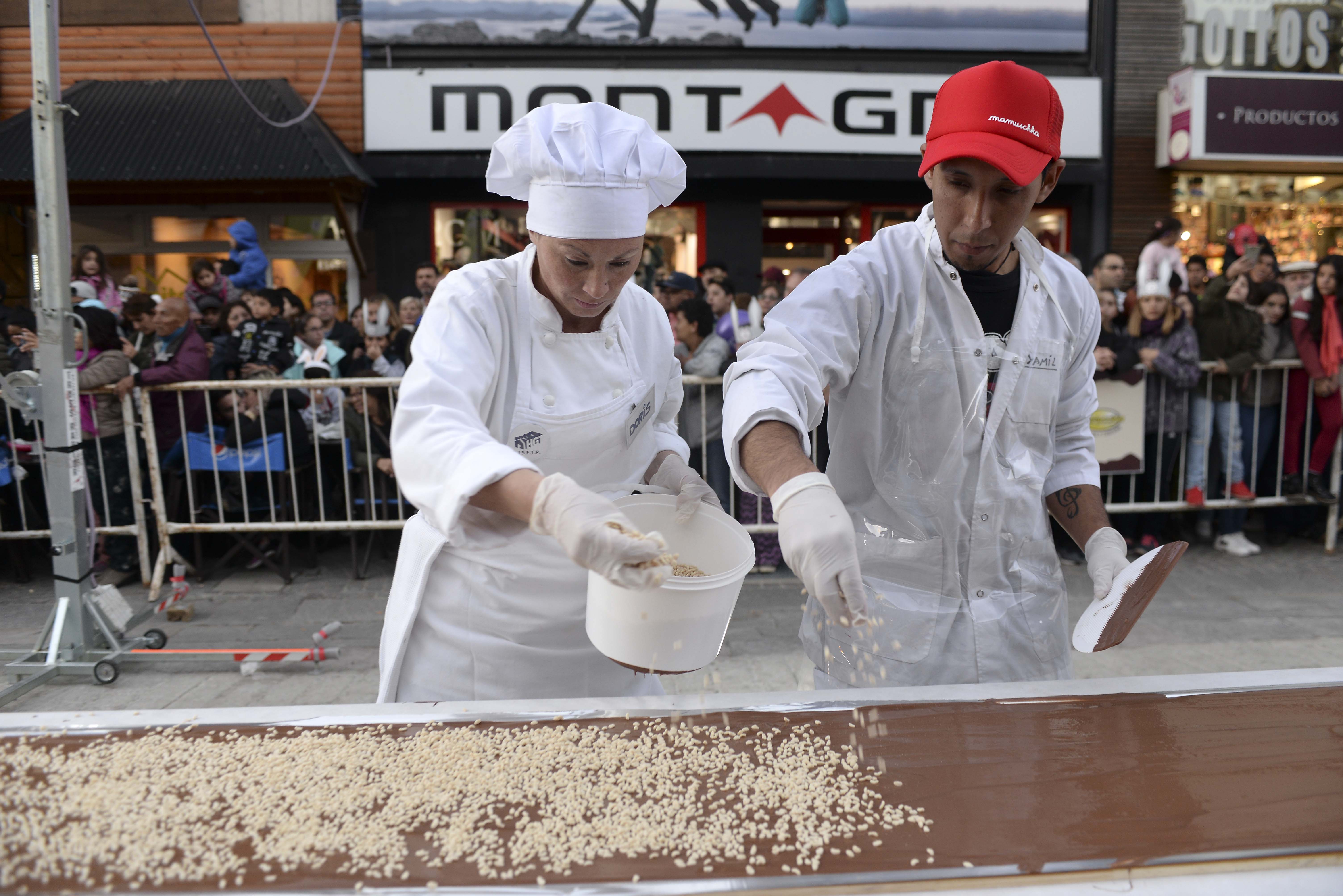 Los maestros chocolateros de Bariloche elaboraron  la barra de chocolate más larga del mundo.