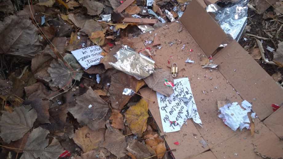 Una vez en el exterior, se procedió a hacer explotar la caja, para descubrir que adentro había otra, de madera. Esta nueva caja cilíndrica también fue detonada. Con esta acción quedó al descubierto su contenido: fotos y cartas que serán investigadas por la comisaría quinta, de la localidad.