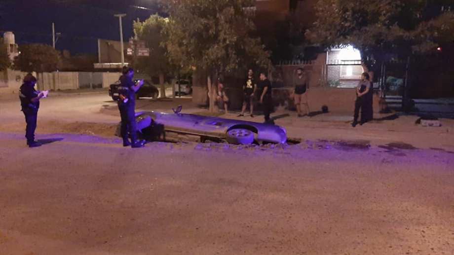 Una camioneta Chevrolet Montana terminó dentro de un pozo en Allen. El hecho ocurrió esta madrugada en Villegas casi Alsina y el conductor no sufrió lesiones.