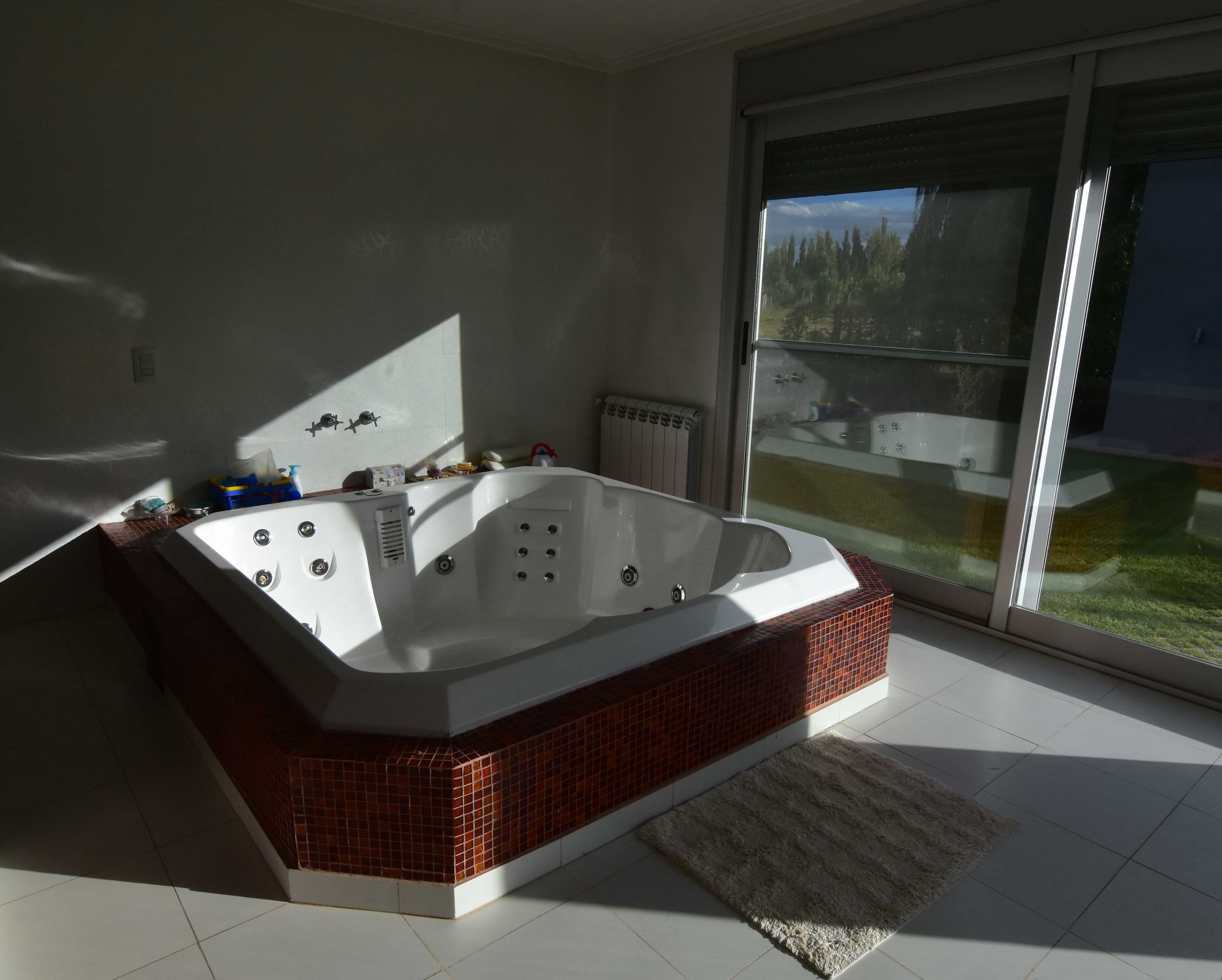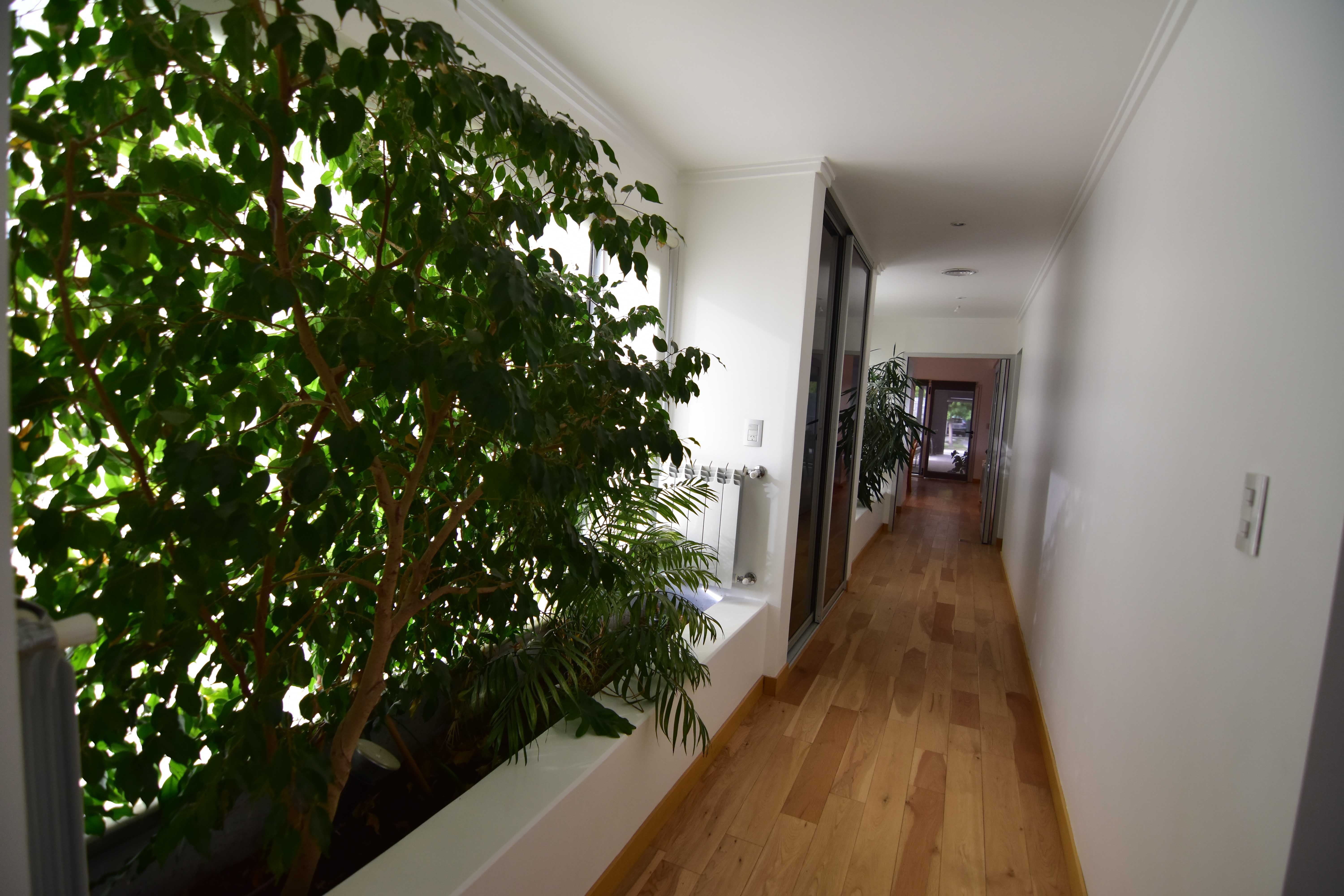 El dormitorio principal, ubicado al fin del recorrido por el amplio pasillo, se aísla de manera contundente del resto de la casa, con ventanales que no comparten el patio interno y con una mini piscina interna que le brinda una intimidad absoluta.