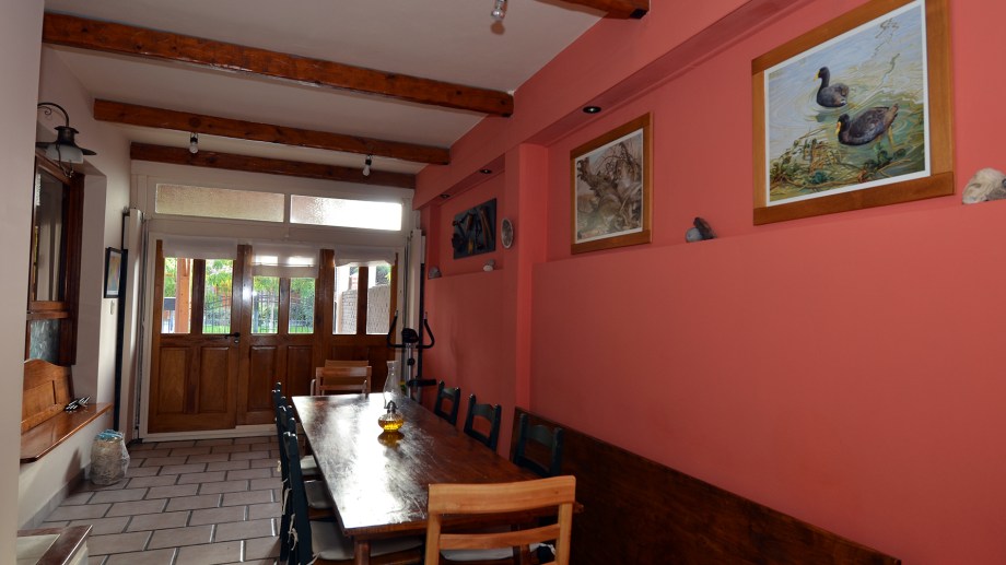 El garaje se readecuó como espacio de reuniones, quincho asador, cocina, brindando una armonía estética acorde con el resto.
