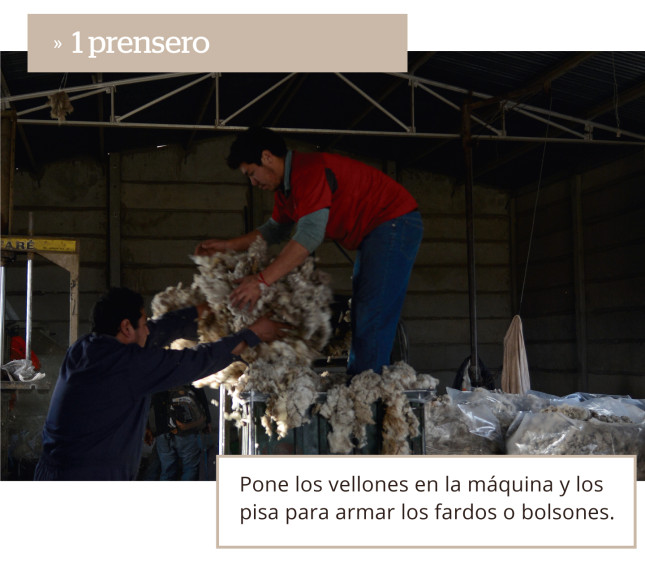 El ganadero entrega a la comparsa sus ovejas encerradas y recibe luego la lana seleccionada y enfardada, a cambio del pago convenido.