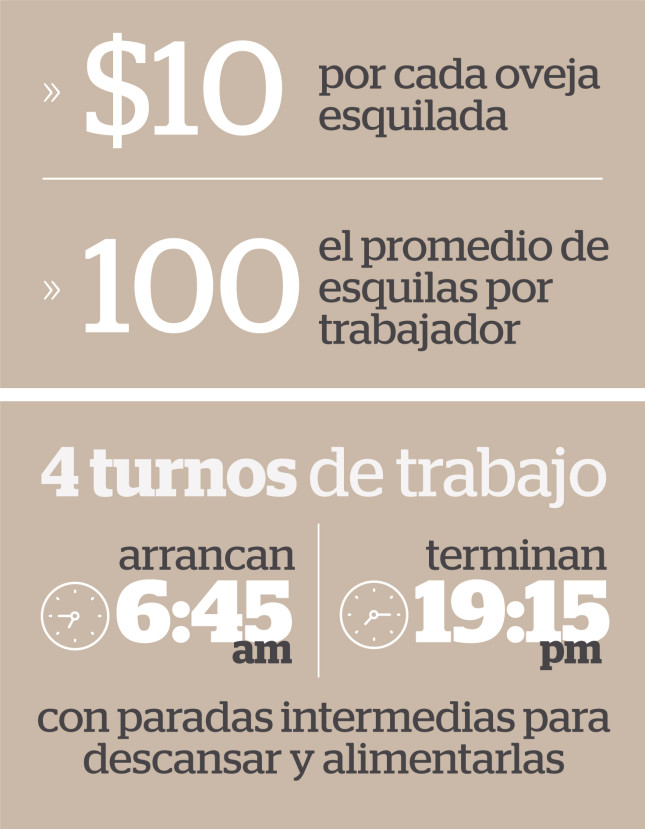 El ruido eléctrico de las esquiladoras rebota en las chapas del galpón y se funde con el del viento y el balido de las ovejas que esperan en el corral.