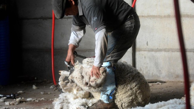 El ruido eléctrico de las esquiladoras rebota en las chapas del galpón y se funde con el del viento y el balido de las ovejas que esperan en el corral.