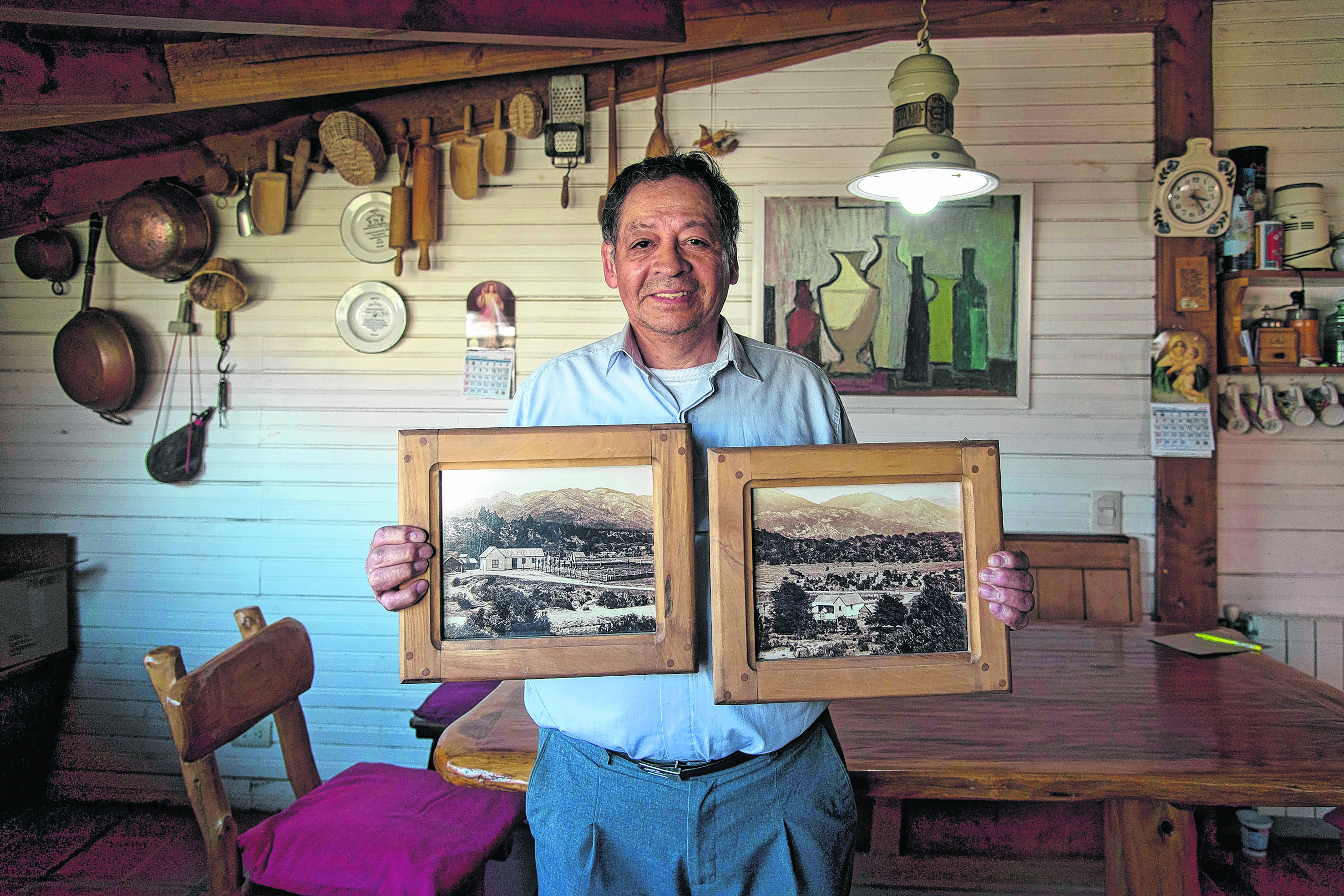 Cesar Franco exalumno de la escuela n° 44 de Puerto Moreno en el antiguo lugar donde funciono el establecimiento educativo que cumplio 100 años. Trabajó durante años en la cooperadora, conserva también fotos y muchos recuerdos. Foto: Marcelo Martinez