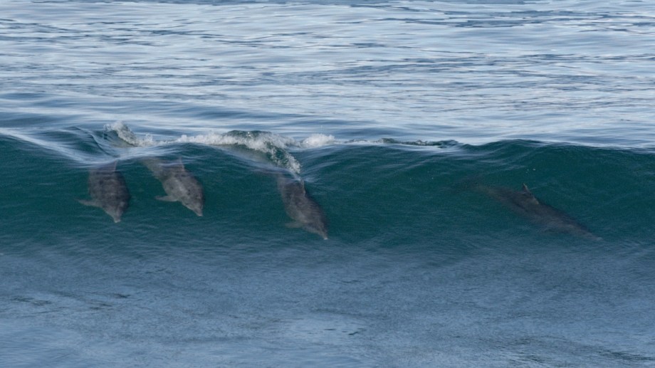 Una estudiante de Biología fotografió a delfines surfeando en Las Grutas