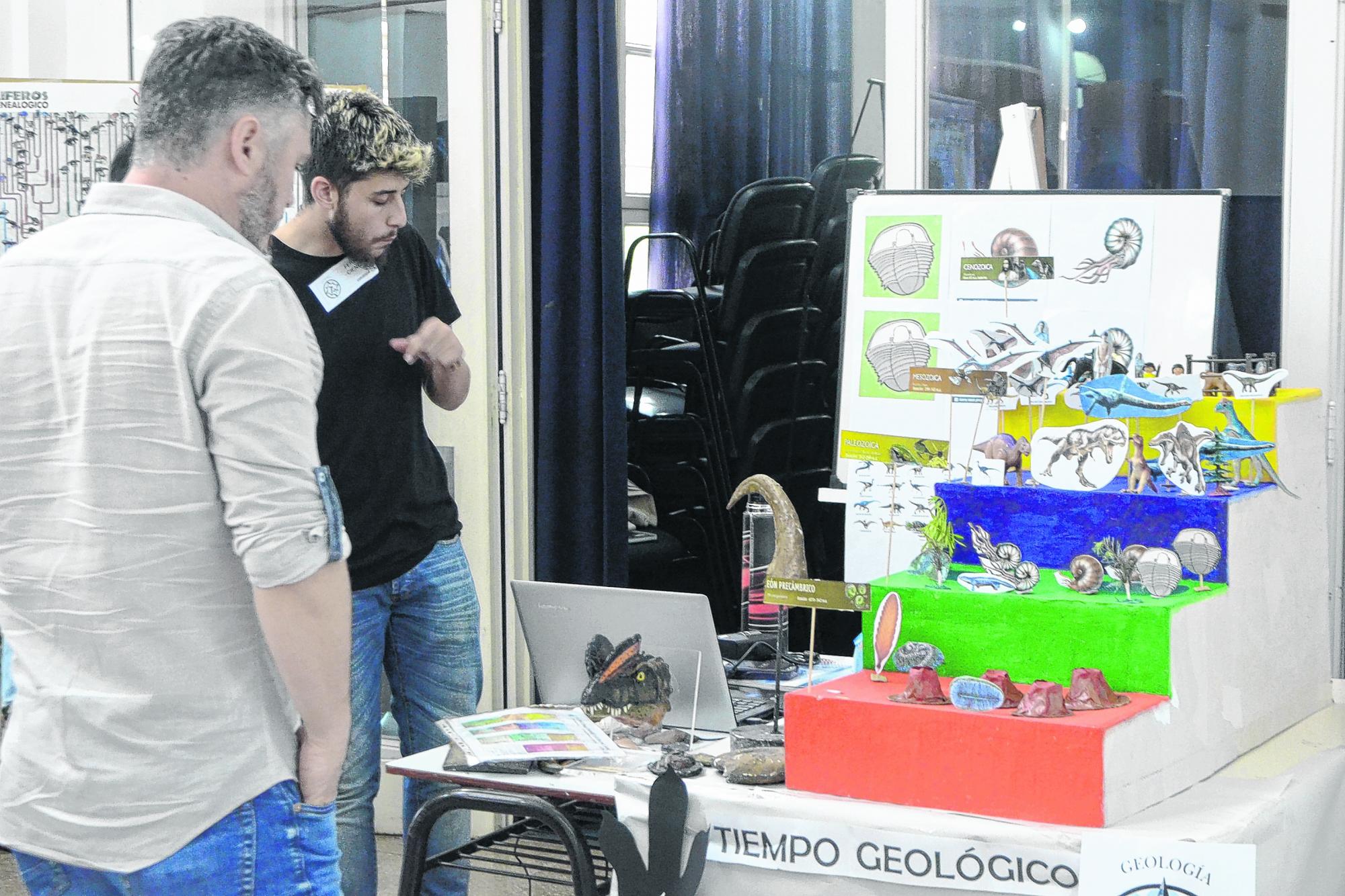 Alumnos de diversos niveles educativos compartieron el encuentro interactivo con estudiantes de esa carrera de la Universidad del Comahe. Explicaciones sobre la formación del territorio, el trabajo de campo de los geólogos, réplicas de fósiles y restos originales se multiplicaron en los 10 estands.