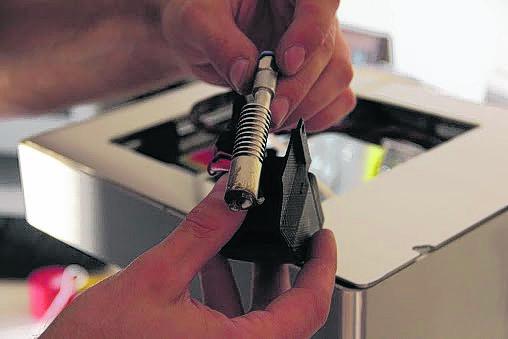 Las impresoras 3D poseen una pieza clave denominada extrusor. Se trata de un pequeño cabezal capaz de derretir el material para que luego la máquina lo vaya apilando capa a capa.