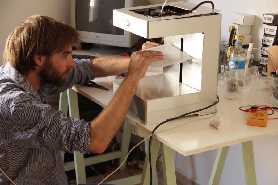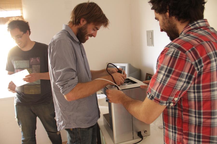 “En el encuentro le hicimos miles de preguntas. Matías llevaba dos años de desarrollo de la máquina, pero no de impresión. Entonces empezamos a cruzar información y surgieron temas de un lado y del otro que no habíamos considerado por separado. Aparecieron problemas surgidos de otro tipo de experiencia”, señaló Nicolás Arias. A partir de la conformación del equipo, los roles se fueron repartiendo casi naturalmente. Las tres piezas fundamentales para el proyecto por fin se encajaron.