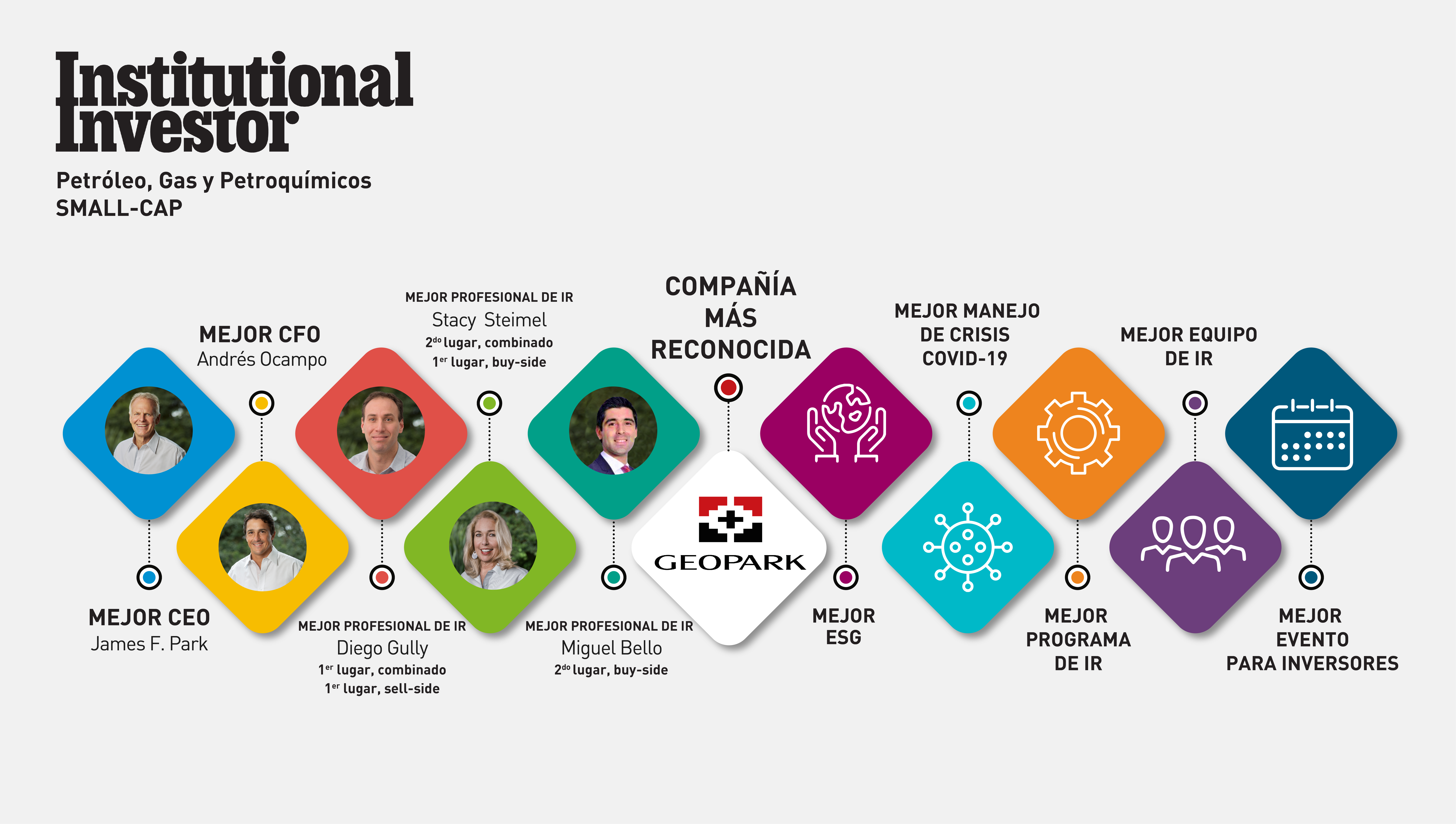 La petrolera GeoPark, con activos en la Cuenca Neuquina y en total en cinco países de Latinoamérica, obtuvo el primer lugar en el ranking anual de Institutional Investor, publicación líder del sector financiero, por su destacado desempeño entre compañías de Small-Cap del sector de Petróleo, Gas y Petroquímicos en Latinoamérica.