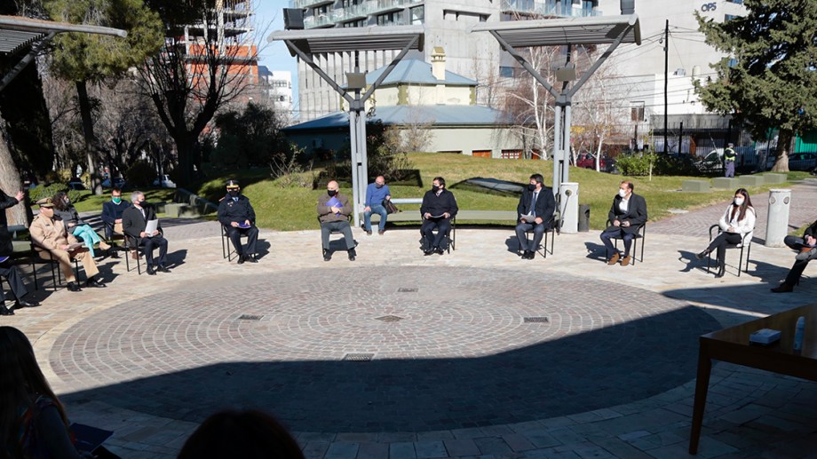 Un enorme círculo en el piso del patio de Casa de Gobierno ayudó para medir la distancia de cada silla. Cada funcionario que tomó un asiento podía ver el rostro de cada persona que integraban esa extensa ronda. El cálido sol de la tarde, el color verde del jardín y el aire que circulaba con libertad fue el contexto ideal para discutir políticas de seguridad.