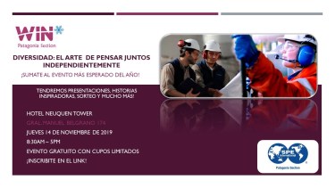 El grupo Women In Energy (WIN), de la Sociedad de Ingenieros del Petróleo (SPE) Patagonia, presentará el próximo 14 de noviembre la primera jornada completa y exclusiva de diversidad en la industria en un encuentro que tendrá charlas, estadísticas, historias inspiradoras, mesas de trabajo y espacios de networking.