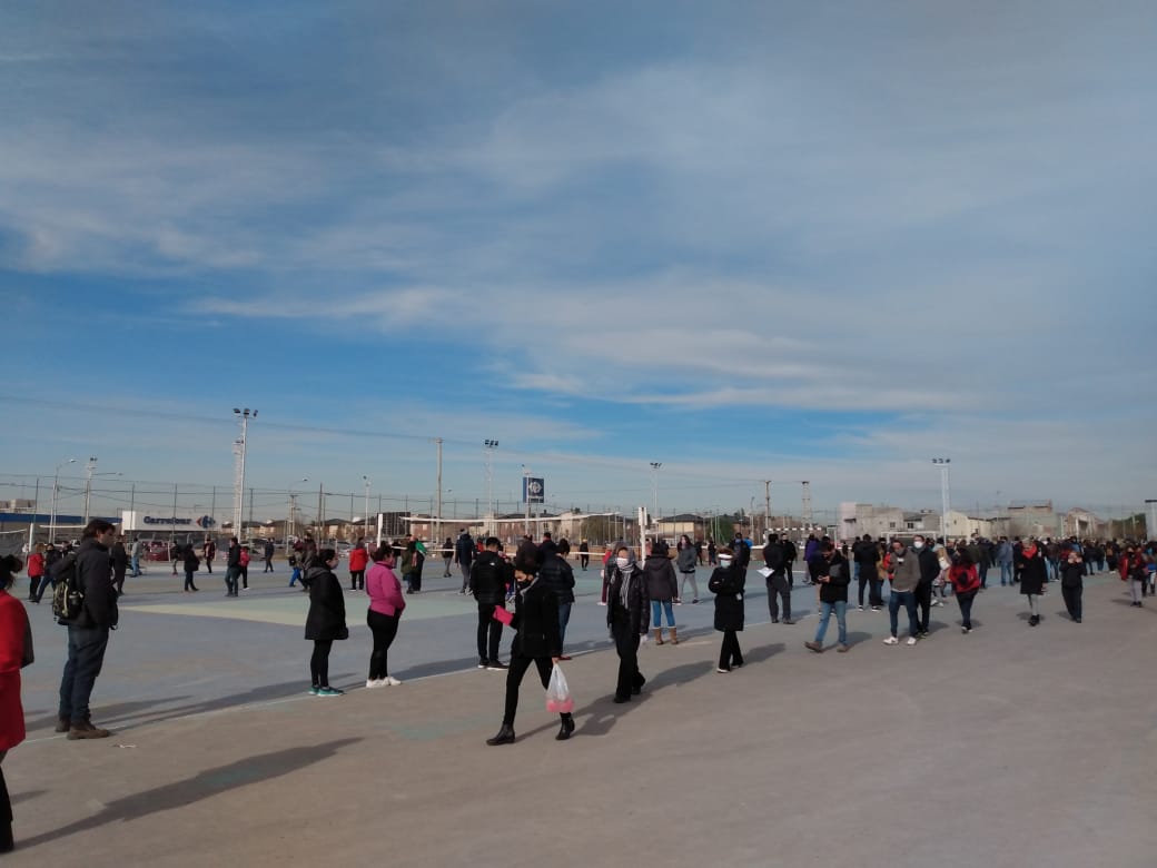 Desde Salud informaron que la jornada es este martes 29. Comenzó a las 14 y se extenderá hasta las 21, en el estadio Ruca Che. Desde temprano se formó una extensa fila de personas interesadas en vacunarse.