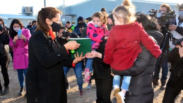 La mandataria destacó el programa Río Negro Suelo Urbano y se dirigió a los beneficiarios de este plan de viviendas: «cuanto ustedes entren en sus casas y tengan esa profundoa emoción de empezar a soñar un futuro distinto, piensen en los trasbajadores que pusieron cada uno de esos ladrillos, porque tenemos que entender que el beneficio que disfrutan tiene que ver con la generosidad de muchos otros».