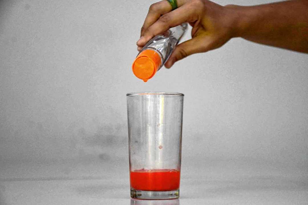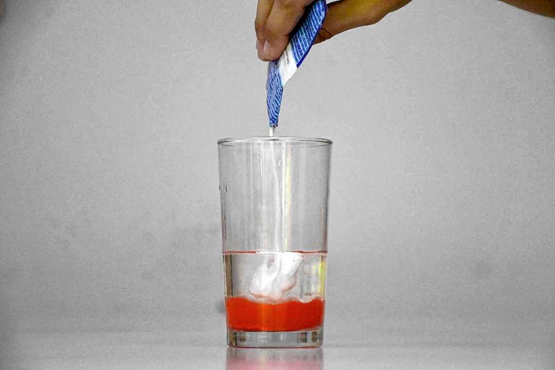 Paso 4: Ahora agregamos la pastilla o el polvo efervescente. Paciencia, que una vez que llegue al suelo, comienza el show.