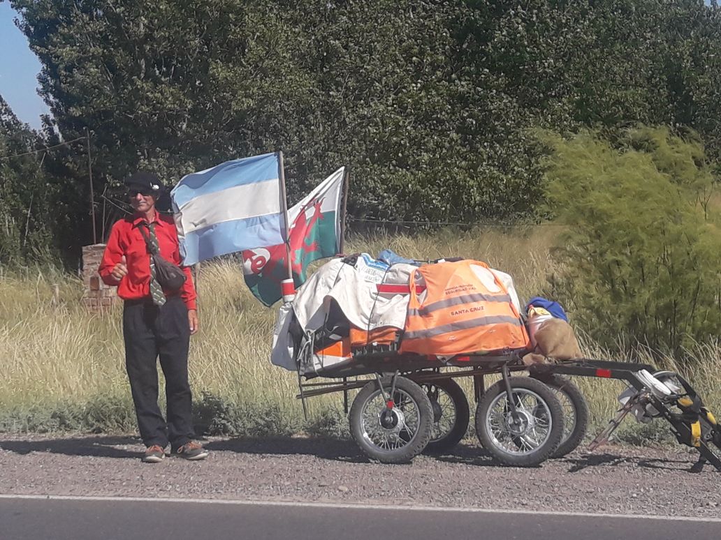 Junto a su “carricatre pilchero”, como denomina al equipaje que lo acompaña, busca alcanzar un récord Guinnes. Intentará visitar todas las capitales de provincia.