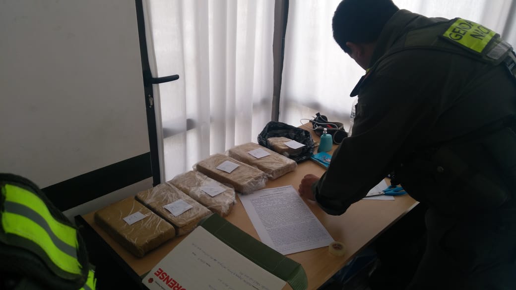 Ante esta situación se procedió a la apertura de su equipaje. Allí encontraron 5,104 kilogramos de marihuana fraccionados en seis paquetes de diferentes tamaños.
